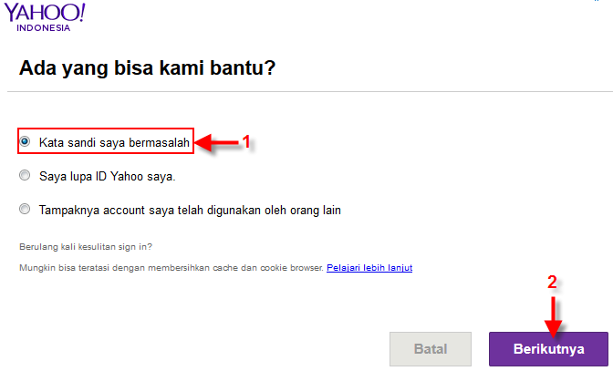 - Pada tahap berikutnya silahkan pilih "Saya lupa ID yaho saya" kemudian tekan tombol "Berikutnya"